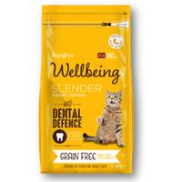 Burgess Wellbeing Slender is a flavoursome complete dry food for cats specially developed to help with weight control. Containing 49% British chicken, it’s grain free and made with the unique ‘Dental Defence’ – a combination of natural fibre and vitamin C with an anti-plaque and calculus agent which helps reduce plaque and tartar formation, whilst also supporting healthy tissue and the immune system. Your cat will be in tip-top condition with help from Burgess Wellbeing Slender. • Contains a unique carbohydrate blend of tapioca, sweet potato, chickpeas and lentils. • Bursting with natural prebiotics from chicory and beet pulp to help support beneficial gut bacteria. • Contains L-Carnitine amino acids to support a healthy metabolism and Methionine amino acids to help balance urinary pH along side Cranberry extract. Ingredients: 49% British Chicken (Poultry meat meal 37%, Poultry fat 9%, Chicken gravy 3%) • Sweet potato • Potato • Tapioca • Lentils • Chickpeas • Potato protein • Unmolassed beet pulp (3%) • Linseed • STAY-C® 50 (700mg/kg). Analytical Constituents: Protein 32% • Fat 16% • Fibre 2.5% • Ash 9.2%.