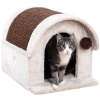 Provide your cat with a suitable place to have a good scratch! The Happy Pet Darwin Scratch Post is a stylish and unique scratching post for all cats. Bound with strong, white and beige, natural material it features two protruding sections and, a dangling ball providing extra fun. The base is finished with rubber feet, ensuring the post does not slip. Dimensions (approx.): Height: 17” Base: 12”